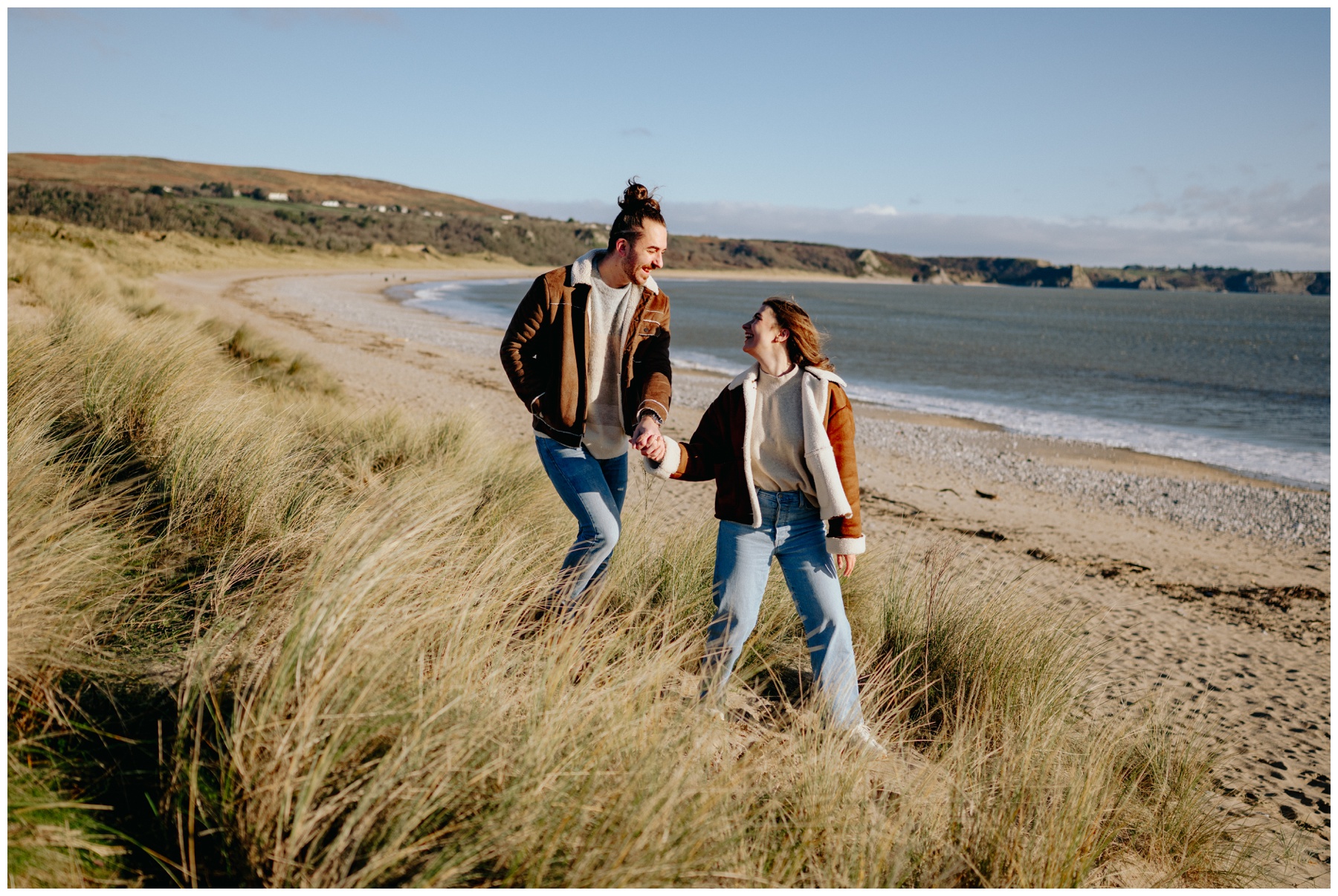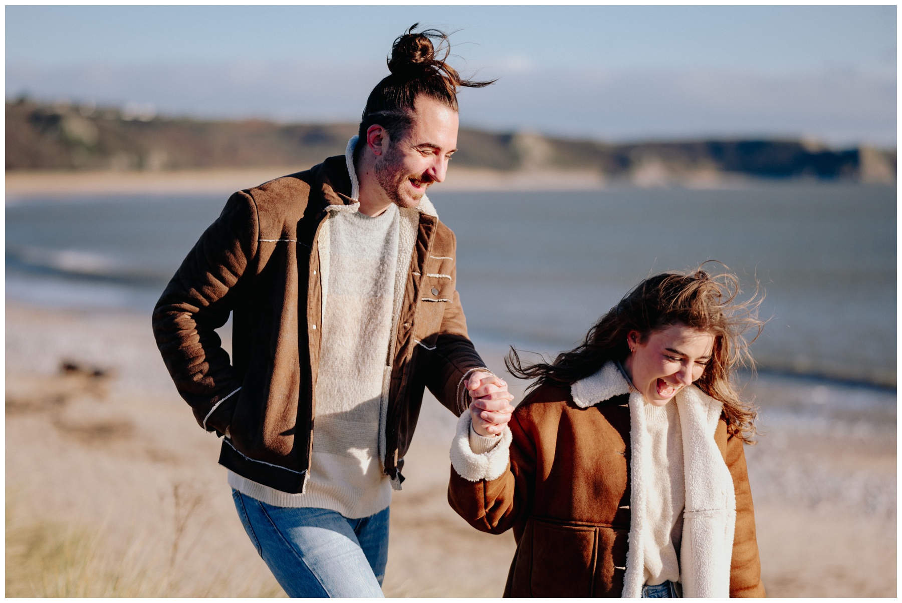 The winter months always offer some challenges for outdoor photography sessions but on a recent trip to Oxwich Bay in the Gower, we actually timed our visit with some very welcome winter sunshine when meeting up with Kathryn and Jamie for some pre wedding photos.